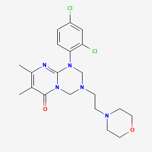 1-(2,4-dichlorophenyl)-7,8-dimethyl-3-(2-morpholinoethyl)-1,2,3,4-tetrahydro-6H-pyrimido[1,2-a][1,3,5]triazin-6-one is a heterocyclic compound that belongs to the pyrimido[1,2-a][1,3,5]triazin-6-one class This compound is characterized by its unique structure, which includes a dichlorophenyl group, dimethyl groups, and a morpholinoethyl side chain