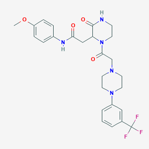 The synthesis of N-(4-methoxyphenyl)-2-[3-oxo-1-({4-[3-(trifluoromethyl)phenyl]piperazin-1-yl}acetyl)piperazin-2-yl]acetamide typically involves multiple steps, including the formation of intermediate compounds. The process often starts with the preparation of the piperazine ring, followed by the introduction of the methoxyphenyl and trifluoromethylphenyl groups. Specific reaction conditions, such as temperature, pressure, and the use of catalysts, are crucial to ensure the desired product is obtained with high yield and purity.
