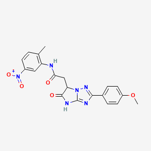 2-[2-(4-methoxyphenyl)-5-oxo-5,6-dihydro-4H-imidazo[1,2-b][1,2,4]triazol-6-yl]-N-(2-methyl-5-nitrophenyl)acetamide is a complex organic compound that belongs to the class of imidazo[1,2-b][1,2,4]triazoles This compound is characterized by its unique structure, which includes a methoxyphenyl group, an imidazo[1,2-b][1,2,4]triazole ring, and a nitrophenylacetamide moiety