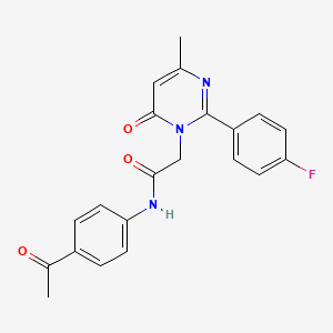 N-(4-ACETYLPHENYL)-2-[2-(4-FLUOROPHENYL)-4-METHYL-6-OXO-1,6-DIHYDROPYRIMIDIN-1-YL]ACETAMIDE is a complex organic compound that has garnered interest in various fields of scientific research. This compound is characterized by its unique structure, which includes an acetylphenyl group, a fluorophenyl group, and a dihydropyrimidinyl group. Its multifaceted structure allows it to participate in a variety of chemical reactions and makes it a valuable subject of study in chemistry, biology, and medicine.