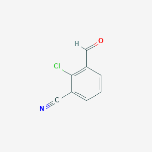 This compound possesses a benzene ring substituted with a chloro group at position 2, a cyano group at position 3, and a formyl (aldehyde) group at position 1. The presence of these three functional groups imparts a unique reactivity profile to the molecule.