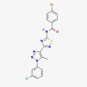 4-bromo-N-{3-[1-(3-chlorophenyl)-5-methyl-1H-1,2,3-triazol-4-yl]-1,2,4-thiadiazol-5-yl}benzamide is a complex organic compound that belongs to the class of heterocyclic compounds. It is characterized by the presence of multiple functional groups, including bromine, chlorine, triazole, thiadiazole, and benzamide. This compound is of significant interest in the fields of medicinal chemistry and pharmaceutical research due to its potential biological activities.