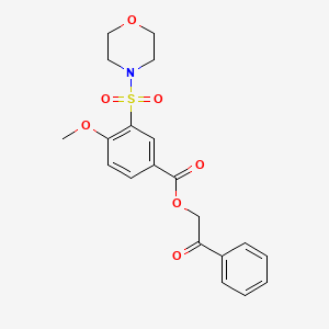 Phenacyl 4-methoxy-3-morpholin-4-ylsulfonylbenzoate is a complex organic compound that has garnered interest in various fields of scientific research This compound is known for its unique structural features, which include a phenacyl group, a methoxy group, a morpholinyl group, and a sulfonylbenzoate moiety