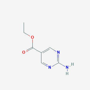 Ethyl 2-aminopyrimidine-5-carboxylate is a heterocyclic organic compound featuring a pyrimidine core functionalized with both an amino group and an ethyl ester. This structure makes it a valuable building block in medicinal chemistry and synthetic organic chemistry. Pyrimidine derivatives are of significant interest in drug development due to their presence in a wide array of biologically active molecules, including antimicrobial and anticancer agents.[1]