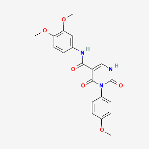 N-(3,4-dimethoxyphenyl)-3-(4-methoxyphenyl)-2,4-dioxo-1,2,3,4-tetrahydropyrimidine-5-carboxamide is a complex organic compound known for its unique structural properties and potential applications in various scientific fields. This compound features a tetrahydropyrimidine core with multiple methoxy and carboxamide functional groups, contributing to its diverse chemical reactivity and biological activity.