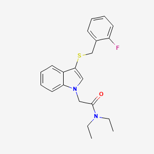 N,N-DIETHYL-2-(3-{[(2-FLUOROPHENYL)METHYL]SULFANYL}-1H-INDOL-1-YL)ACETAMIDE: is a complex organic compound that belongs to the class of indole derivatives. Indole derivatives are known for their diverse biological activities and have been extensively studied for their potential therapeutic applications This compound features an indole core, which is a bicyclic structure consisting of a benzene ring fused to a pyrrole ring
