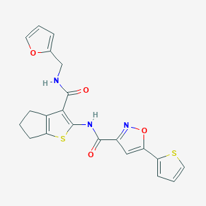 N-(3-{[(FURAN-2-YL)METHYL]CARBAMOYL}-4H,5H,6H-CYCLOPENTA[B]THIOPHEN-2-YL)-5-(THIOPHEN-2-YL)-1,2-OXAZOLE-3-CARBOXAMIDE is a complex organic compound that features a unique combination of furan, thiophene, and oxazole rings