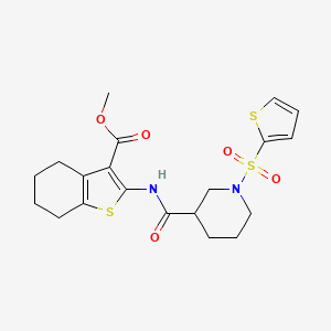 METHYL 2-[1-(THIOPHENE-2-SULFONYL)PIPERIDINE-3-AMIDO]-4,5,6,7-TETRAHYDRO-1-BENZOTHIOPHENE-3-CARBOXYLATE is a complex organic compound that features a combination of thiophene, piperidine, and benzothiophene moieties