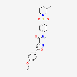 5-(4-ethoxyphenyl)-N-{4-[(3-methylpiperidin-1-yl)sulfonyl]phenyl}-1,2-oxazole-3-carboxamide is a complex organic compound with potential applications in various fields, including chemistry, biology, and medicine. This compound is characterized by its unique structure, which includes an oxazole ring, a piperidine moiety, and sulfonyl and carboxamide functional groups.