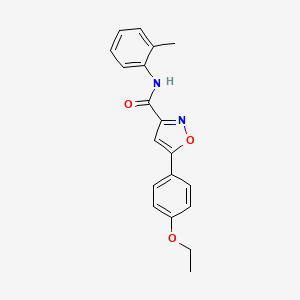 The synthesis of 5-(4-ethoxyphenyl)-N-(2-methylphenyl)-1,2-oxazole-3-carboxamide typically involves the cyclization of appropriate precursors under specific reaction conditions. One common method involves the reaction of 4-ethoxybenzoyl chloride with 2-methylphenylhydrazine to form an intermediate hydrazone. This intermediate is then subjected to cyclization using a suitable cyclizing agent, such as phosphorus oxychloride (POCl3), to yield the desired oxazole derivative.