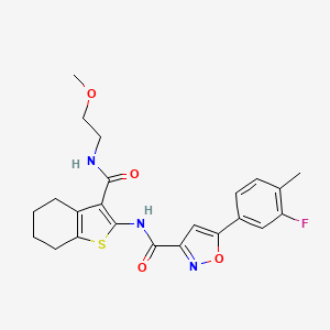 5-(3-fluoro-4-methylphenyl)-N-{3-[(2-methoxyethyl)carbamoyl]-4,5,6,7-tetrahydro-1-benzothiophen-2-yl}-1,2-oxazole-3-carboxamide is a complex organic compound with potential applications in various fields of scientific research. This compound features a unique structure that includes a fluorinated phenyl group, a methoxyethyl carbamoyl group, and a tetrahydrobenzothiophene moiety, making it an interesting subject for chemical and biological studies.