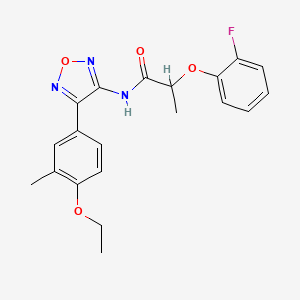 N-[4-(4-ethoxy-3-methylphenyl)-1,2,5-oxadiazol-3-yl]-2-(2-fluorophenoxy)propanamide is a synthetic organic compound with potential applications in various scientific fields. This compound features a unique structure that includes an oxadiazole ring, a fluorophenoxy group, and an ethoxy-methylphenyl moiety, making it a subject of interest for researchers in chemistry, biology, and medicine.