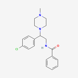 N-[2-(4-chlorophenyl)-2-(4-methylpiperazin-1-yl)ethyl]benzamide is a synthetic compound known for its potential applications in medicinal chemistry. It is characterized by the presence of a benzamide group linked to a piperazine ring, which is further substituted with a chlorophenyl group. This compound has been studied for its interaction with various biological targets, making it a subject of interest in pharmacological research.