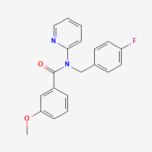 N-[(4-Fluorophenyl)methyl]-3-methoxy-N-(pyridin-2-yl)benzamide is a complex organic compound that has garnered interest in various scientific fields due to its unique chemical structure and potential applications. This compound features a benzamide core substituted with a 4-fluorophenylmethyl group, a methoxy group, and a pyridin-2-yl group, making it a versatile molecule for research and industrial purposes.