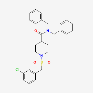 N,N-DIBENZYL-1-[(3-CHLOROPHENYL)METHANESULFONYL]PIPERIDINE-4-CARBOXAMIDE is a complex organic compound with the molecular formula C30H27ClN2O3. This compound is known for its unique structural features, which include a piperidine ring, a chlorophenyl group, and a methanesulfonyl group. It is primarily used in research settings and has various applications in chemistry and biology.