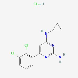 InChI=1S/C13H12Cl2N4.ClH/c14-9-3-1-2-8(12(9)15)10-6-11(17-7-4-5-7)19-13(16)18-10;/h1-3,6-7H,4-5H2,(H3,16,17,18,19);1H | |