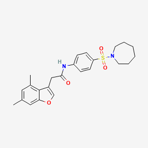N-[4-(azepan-1-ylsulfonyl)phenyl]-2-(4,6-dimethyl-1-benzofuran-3-yl)acetamide is a complex organic compound that has garnered interest in various fields of scientific research This compound is characterized by its unique structure, which includes an azepane ring, a sulfonyl group, and a benzofuran moiety