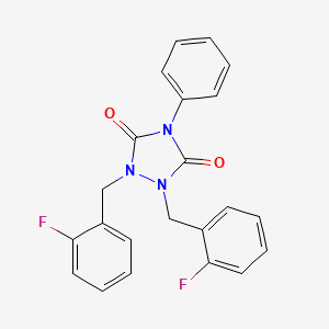 1,2-bis[(2-fluorophenyl)methyl]-4-phenyl-1,2,4-triazolidine-3,5-dione is a complex organic compound characterized by its unique structure, which includes fluorinated phenyl groups and a triazolidine-dione core