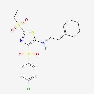 4-(4-CHLOROBENZENESULFONYL)-N-[2-(CYCLOHEX-1-EN-1-YL)ETHYL]-2-(ETHANESULFONYL)-1,3-THIAZOL-5-AMINE is a complex organic compound that features a thiazole ring, sulfonyl groups, and a chlorobenzene moiety