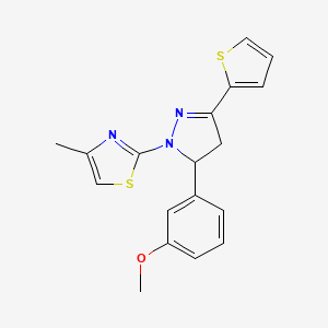 2-[5-(3-methoxyphenyl)-3-(thiophen-2-yl)-4,5-dihydro-1H-pyrazol-1-yl]-4-methyl-1,3-thiazole is a complex heterocyclic compound that incorporates multiple functional groups, including a methoxyphenyl group, a thiophene ring, a dihydropyrazole ring, and a thiazole ring