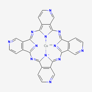 The mechanism by which Copper(II) 4,4’,4’‘,4’‘’-tetraaza-29H,31H-phthalocyanine exerts its effects is largely dependent on its ability to interact with molecular targets through coordination chemistry. The copper center can participate in redox reactions, facilitating electron transfer processes. Additionally, the phthalocyanine ring can absorb light and generate reactive oxygen species, making it effective in photodynamic therapy.