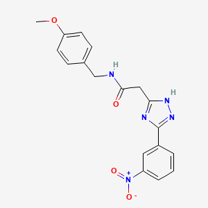N-[(4-methoxyphenyl)methyl]-2-[3-(3-nitrophenyl)-1H-1,2,4-triazol-5-yl]acetamide is a complex organic compound that belongs to the class of triazole derivatives. Triazoles are five-membered heterocyclic compounds containing three nitrogen atoms. This particular compound is characterized by the presence of a methoxyphenyl group, a nitrophenyl group, and an acetamide moiety, making it a molecule of interest in various fields of scientific research.