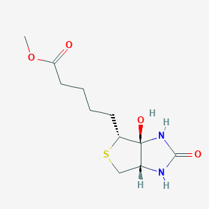 METHYL 5-{3A-HYDROXY-2-OXO-HEXAHYDRO-1H-THIENO[3,4-D]IMIDAZOL-4-YL}PENTANOATE is unique due to its specific ester functional group, which provides distinct reactivity and solubility properties compared to other biotin derivatives. This makes it particularly useful in applications requiring specific chemical modifications or solubility characteristics.