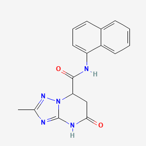 2-methyl-N-(naphthalen-1-yl)-5-oxo-4,5,6,7-tetrahydro[1,2,4]triazolo[1,5-a]pyrimidine-7-carboxamide is a heterocyclic compound that belongs to the class of triazolopyrimidines. These compounds are known for their diverse biological activities and have been extensively studied for their potential therapeutic applications. The structure of this compound includes a triazole ring fused with a pyrimidine ring, which is further substituted with a naphthalene moiety and a carboxamide group.
