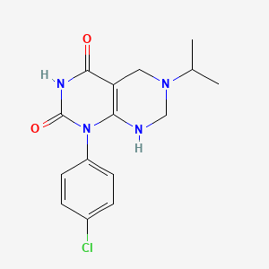 The synthesis of 1-(4-CHLOROPHENYL)-6-(PROPAN-2-YL)-1H,2H,3H,4H,5H,6H,7H,8H-[1,3]DIAZINO[4,5-D]PYRIMIDINE-2,4-DIONE can be achieved through various synthetic routes. One common method involves the condensation of 4-chlorobenzaldehyde with isopropylamine, followed by cyclization with urea under acidic conditions . Industrial production methods often employ similar synthetic routes but on a larger scale, utilizing continuous flow reactors to enhance efficiency and yield.