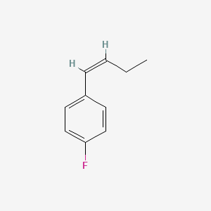 1-[(Z)-but-1-enyl]-4-fluorobenzene is a fluorinated aromatic compound featuring a Z-configured butenyl substituent at the para position of the benzene ring. The Z stereochemistry denotes that the higher-priority groups (fluorine and the butenyl chain) are on the same side of the double bond, influencing its spatial arrangement and reactivity. This compound is structurally characterized by: