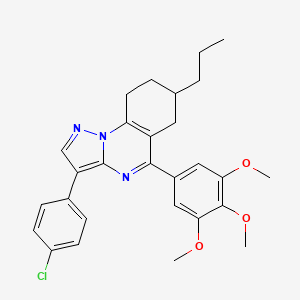 3-(4-CHLOROPHENYL)-7-PROPYL-5-(3,4,5-TRIMETHOXYPHENYL)-6H,7H,8H,9H-PYRAZOLO[1,5-A]QUINAZOLINE is a complex organic compound that has garnered interest due to its unique structural features and potential applications in various fields. This compound is characterized by the presence of a pyrazoloquinazoline core, which is fused with chlorophenyl and trimethoxyphenyl groups, making it a subject of study in medicinal chemistry and material science.