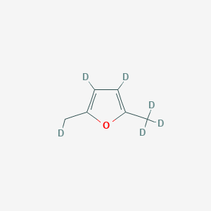 The mechanism of action of 2,5-Dimethylfuran-d6 primarily involves its role as a stable isotope-labeled compound. In NMR spectroscopy, the deuterium atoms provide distinct signals that help in the identification and quantification of other compounds in a mixture. The deuterium atoms do not participate in chemical reactions, making the compound inert and stable under various conditions .