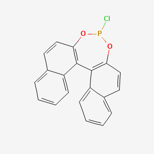 The mechanism of action of 4-Chlorodinaphtho[2,1-d:1’,2’-f][1,3,2]dioxaphosphepine involves its ability to coordinate with metal ions, forming stable complexes. These complexes can act as catalysts in various chemical reactions, facilitating the formation of chiral products. The molecular targets and pathways involved depend on the specific application, such as enzyme inhibition in biological systems or catalytic activity in chemical reactions .