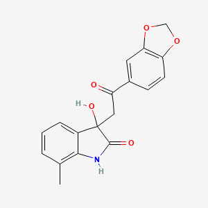 3-[2-(2H-1,3-BENZODIOXOL-5-YL)-2-OXOETHYL]-3-HYDROXY-7-METHYL-2,3-DIHYDRO-1H-INDOL-2-ONE is a complex organic compound that belongs to the class of indole derivatives. This compound is characterized by the presence of a benzodioxole moiety, which is known for its biological activity and potential therapeutic applications. The indole nucleus is a privileged structural motif found in a variety of naturally occurring and synthetic molecules exhibiting a broad spectrum of biological activities .