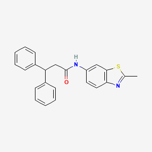 The mechanism of action of N-(2-methyl-1,3-benzothiazol-6-yl)-3,3-diphenylpropanamide involves its interaction with specific molecular targets, such as enzymes and receptors. The compound can inhibit or activate these targets, leading to various biological effects. For example, it may inhibit the activity of certain enzymes involved in cancer cell proliferation, thereby exerting anticancer effects.