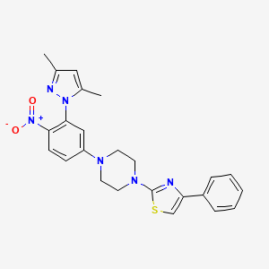 1-[3-(3,5-dimethyl-1H-pyrazol-1-yl)-4-nitrophenyl]-4-(4-phenyl-1,3-thiazol-2-yl)piperazine is a complex organic compound that features a combination of pyrazole, nitrophenyl, thiazole, and piperazine moieties
