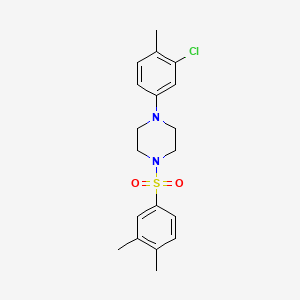The mechanism of action of 1-(3-Chloro-4-methylphenyl)-4-[(3,4-dimethylphenyl)sulfonyl]piperazine depends on its specific application. In biological systems, it may interact with molecular targets such as enzymes or receptors, modulating their activity. The sulfonyl group can enhance the compound’s ability to form hydrogen bonds, influencing its binding affinity and specificity.
