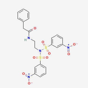 N-(2-{bis[(3-nitrophenyl)sulfonyl]amino}ethyl)-2-phenylacetamide is a complex organic compound characterized by its unique structure, which includes nitrophenyl, sulfonyl, and phenylacetamide groups