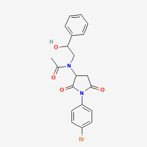 N-[1-(4-bromophenyl)-2,5-dioxopyrrolidin-3-yl]-N-(2-hydroxy-2-phenylethyl)acetamide is a synthetic compound known for its unique chemical structure and potential applications in various fields. This compound features a bromophenyl group, a dioxopyrrolidinyl ring, and a hydroxy-phenylethyl moiety, making it an interesting subject for chemical and pharmacological studies.