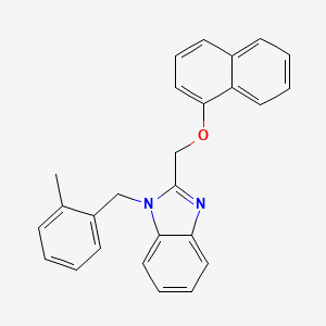 1-[(2-METHYLPHENYL)METHYL]-2-[(NAPHTHALEN-1-YLOXY)METHYL]-1H-1,3-BENZODIAZOLE is a complex organic compound that belongs to the class of benzodiazoles Benzodiazoles are known for their diverse biological activities and are often used in medicinal chemistry for the development of new therapeutic agents
