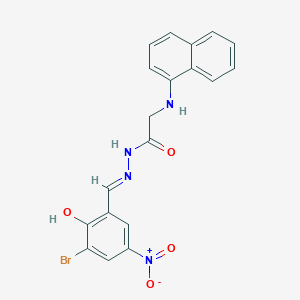 N’-[(E)-(3-bromo-2-hydroxy-5-nitrophenyl)methylidene]-2-(naphthalen-1-ylamino)acetohydrazide is a complex organic compound characterized by its unique structure, which includes a brominated phenyl ring, a naphthyl group, and a hydrazide linkage. This compound is of interest in various fields of scientific research due to its potential biological activities and applications in organic synthesis.