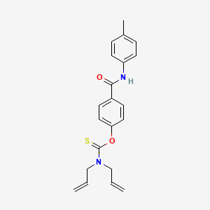 4-{[Bis(prop-2-EN-1-YL)carbamothioyl]oxy}-N-(4-methylphenyl)benzamide is a complex organic compound with potential applications in various fields of scientific research. This compound is characterized by its unique molecular structure, which includes a benzamide core substituted with a bis(prop-2-en-1-yl)carbamothioyl group and a 4-methylphenyl group.
