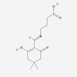 4-(((4,4-Dimethyl-2,6-dioxocyclohexylidene)methyl)amino)butanoic acid is a synthetic organic compound with the molecular formula C13H19NO4 and a molecular weight of 253.301 g/mol This compound is known for its unique structure, which includes a cyclohexylidene ring with two keto groups and a butanoic acid moiety