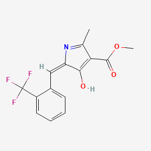 Methyl (5E)-2-methyl-4-oxo-5-{[2-(trifluoromethyl)phenyl]methylidene}-4,5-dihydro-1H-pyrrole-3-carboxylate is a complex organic compound that belongs to the class of pyrrole derivatives. Pyrrole derivatives are known for their diverse biological and medicinal properties. This compound, in particular, is characterized by the presence of a trifluoromethyl group, which imparts unique chemical and physical properties.