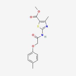 Methyl 4-methyl-2-[2-(4-methylphenoxy)acetamido]-1,3-thiazole-5-carboxylate is an organic compound that belongs to the class of thiazole derivatives This compound is characterized by its complex structure, which includes a thiazole ring, a carboxylate group, and a phenoxyacetamido moiety