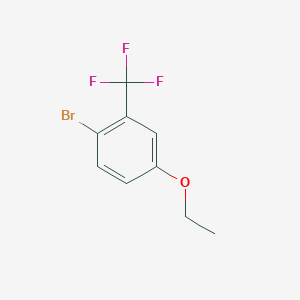 This compound (CAS No: 156605-95-7) is a substituted benzene ring that serves as a valuable intermediate in organic synthesis.[1] Its structure is characterized by a bromine atom and a trifluoromethyl group ortho to each other, and an ethoxy group para to the bromine atom. This specific arrangement of substituents dictates its reactivity and utility. The trifluoromethyl group acts as a strong electron-withdrawing group, influencing the electronic nature of the aromatic ring, while also enhancing lipophilicity and metabolic stability in derivative compounds—qualities highly sought after in drug design.[2]