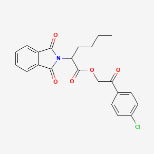 2-(4-chlorophenyl)-2-oxoethyl 2-(1,3-dioxo-1,3-dihydro-2H-isoindol-2-yl)hexanoate is unique due to its combination of the phthalimide and chlorophenyl moieties, which confer specific reactivity and potential applications in diverse fields. Its structure allows for versatile chemical modifications, making it a valuable compound in research and industry.