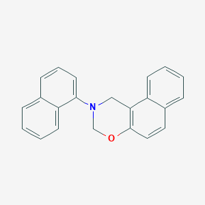 The synthesis of 2-(NAPHTHALEN-1-YL)-1H,2H,3H-NAPHTHO[1,2-E][1,3]OXAZINE typically involves the condensation of 2-naphthol with aryl or heteroaryl aldehydes in the presence of ammonia. This reaction can be carried out under catalyst-free conditions at room temperature . Another method involves the use of Vilsmeier reagent in the presence of FeCl3/SiO2 nanoparticles, which provides a novel route to synthesize highly functionalized oxazines .