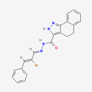 N’-[(E,2Z)-2-bromo-3-phenyl-2-propenylidene]-4,5-dihydro-1H-benzo[g]indazole-3-carbohydrazide is a synthetic organic compound known for its unique structural properties and potential applications in various scientific fields. This compound features a benzo[g]indazole core, which is a fused bicyclic system, and a carbohydrazide functional group, making it an interesting subject for chemical research and potential pharmaceutical applications.