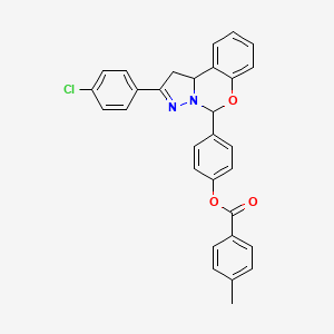 4-[2-(4-Chlorophenyl)-1,10b-dihydropyrazolo[1,5-c][1,3]benzoxazin-5-yl]phenyl 4-methylbenzoate is a complex organic compound with a unique structure that combines several aromatic rings and heterocyclic elements